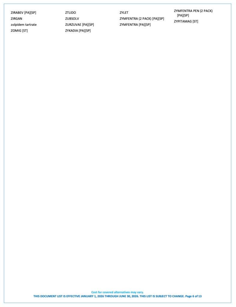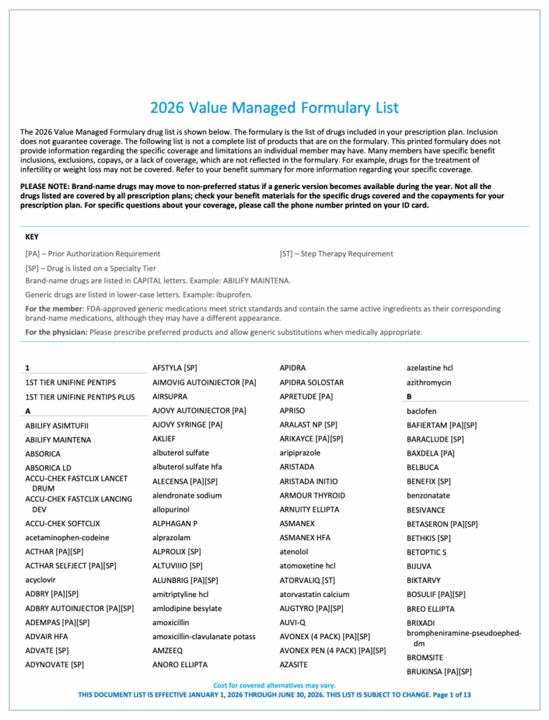 2026 Value Managed Formulary List